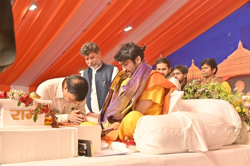 उद्योग मंत्री श्री लखन लाल देवांगन और भाजपा प्रदेश अध्यक्ष श्री किरण सिंह देव सपरिवार पहुँचे हनुमंत कथा, पूज्य महराज श्री धीरेंद्र कृष्ण शास्त्री जी (बागेश्वर धाम सरकार) का लिया आशीर्वाद